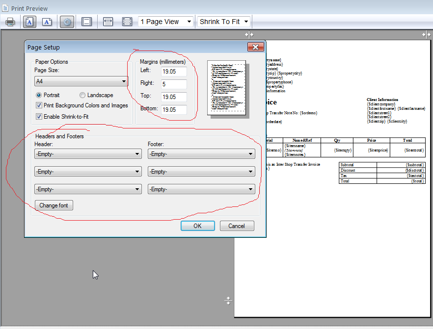 Although on the same Page Setup window you may correct page margins (see Margins section) if needed.